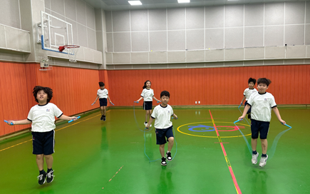 - 주 1회 아침활동으로 체육관에서 줄넘기