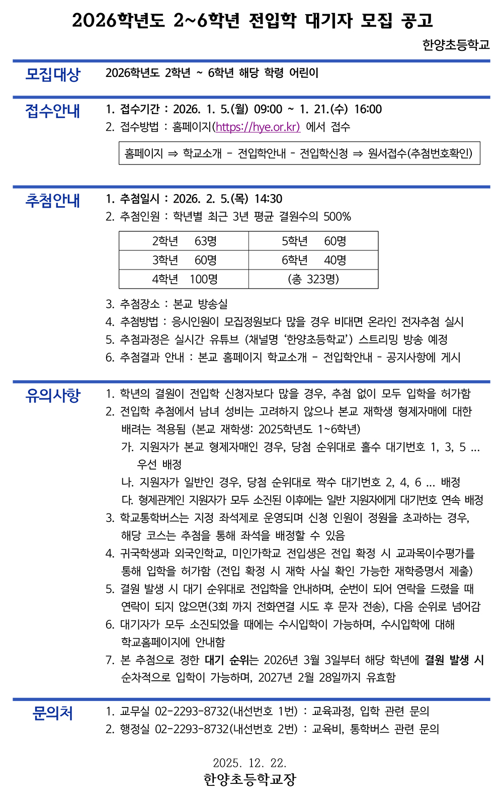 전입학안내 학급 홈